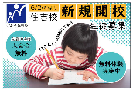 新規開校(住吉校)の認知拡大、無料体験授業への集客、早期申込みの促進のため。